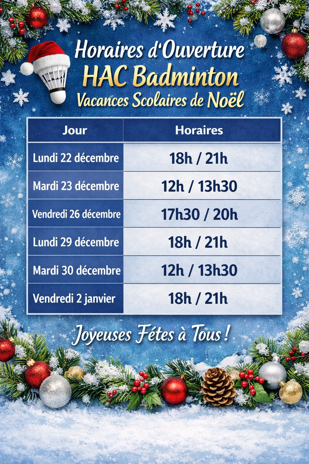ouverture vacances Noël